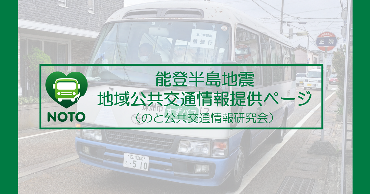このページでは、能登半島の復旧・復興に合わせ日々刻々と変化する能登地域の鉄道・バスの運行情報を一覧にしたまとめWebサイトです。鉄道・バスの運行情報を提供することで、復興への一助になればと思い開設しました。